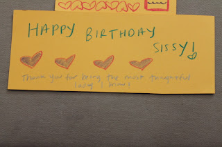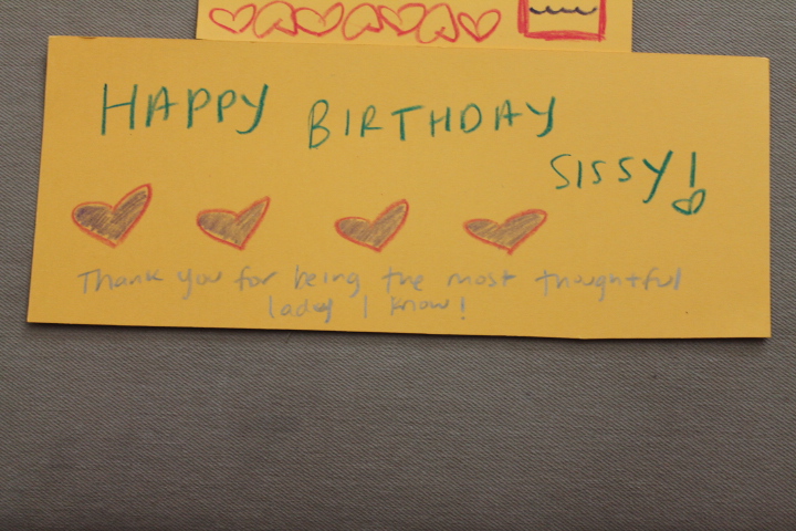 Well it is official… as of May 4th 2011 I was officially out of my twenties and entered into my thirties. I accepted the changed full heartedly and felt like I was not getting older but better. My sweet sister came up to spend the special day with me and we had so much fun. I had to work half day on my birthday so she stayed home with Hunty. When I got home she had made a whole bunch of sweet cards all over the house that would have made anyone feel great on their special day. We went to lunch as well and just had a really relaxing day. When Russy pie got home we opened up presents. He surprised me with a great bouquet of flowers and an amazing card. After that he further surprised me with the quilting frame that I wanted.